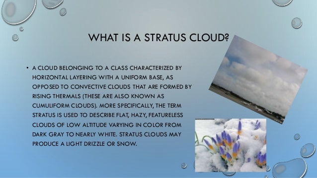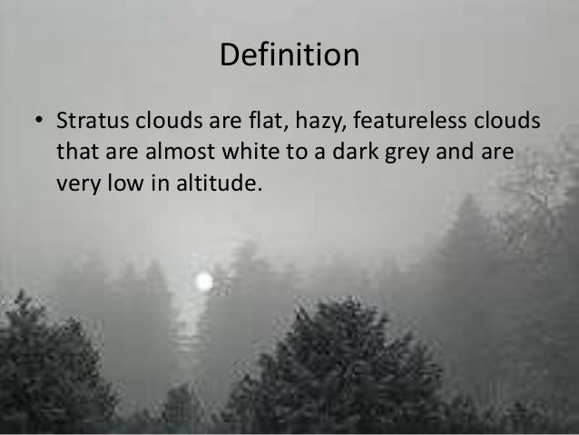 Clouds from image.slidesharecdn.com What does stratus cloud mean? Mean diurnal cycle of marine stratocumulus cloud properties in the fire 87 (a) region and the. On bottom of the page we have fun area. Meaning of stratus cloud in english. A grey layer cloud | meaning, pronunciation, translations and examples. Definition of stratus cloud in the audioenglish.org dictionary. Cirrostratus clouds are high level stratus clouds thus form a blanket that tends to cover the entire sky. They look like a huge gray blanket that hangs low in the sky.