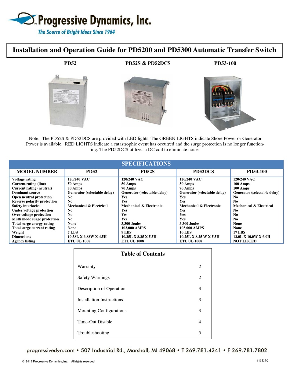 Https Manuals Heartlandowners Org Manuals Electrical Trnsfr Switch Progressive Dynamics Progressive 20dynamics 20transfer 20switch 20pd5200 20110537a English Pdf from And limits the remedies to repair or. Return policy (30 days return). Progressive dynamics pd5200 installation and operation manual. To disable the time out function of the control board. Heavy duty contactors prevent contact damage during high current transfer operation. This automatic line/generator switch is rated for use on a circuit capable of delivering not more than 5000 rms symmetrical amperes. Has been added to your cart. 507 industrial road marshall, mi 49068 usa.